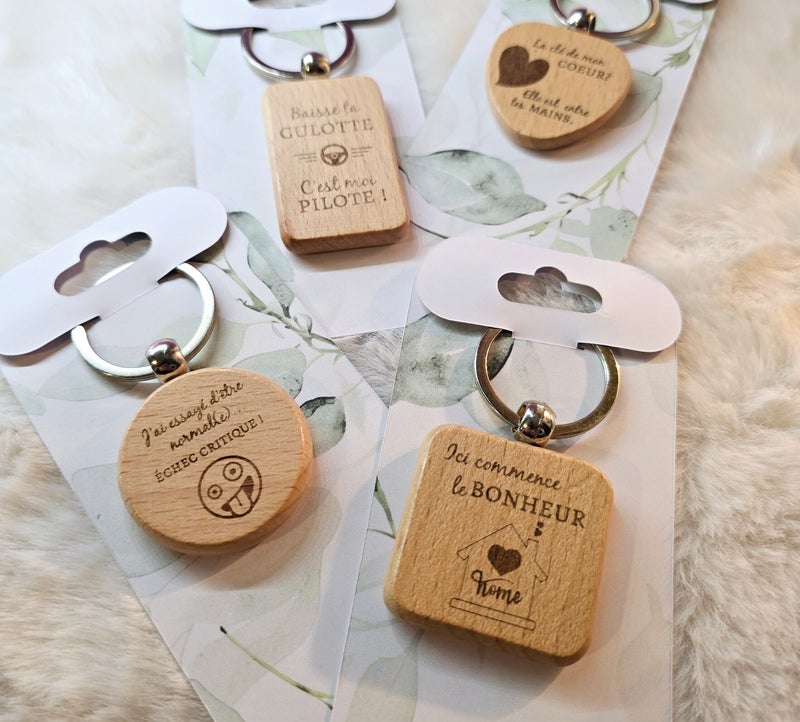 Découvrez notre collection de porte-clés en bois et en simili cuir gravé, conçus avec soin dans notre atelier des Vosges. Que vous cherchiez un accessoire élégant, humoristique ou symbolique, chaque modèle allie authenticité, durabilité et originalité.