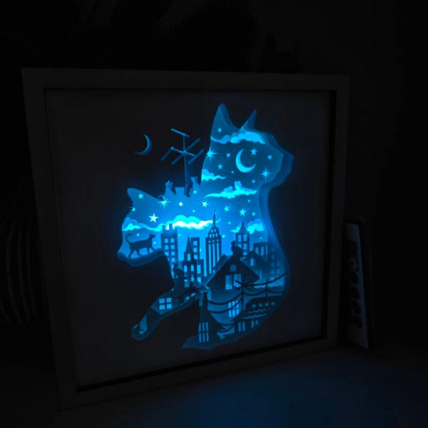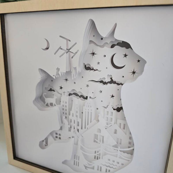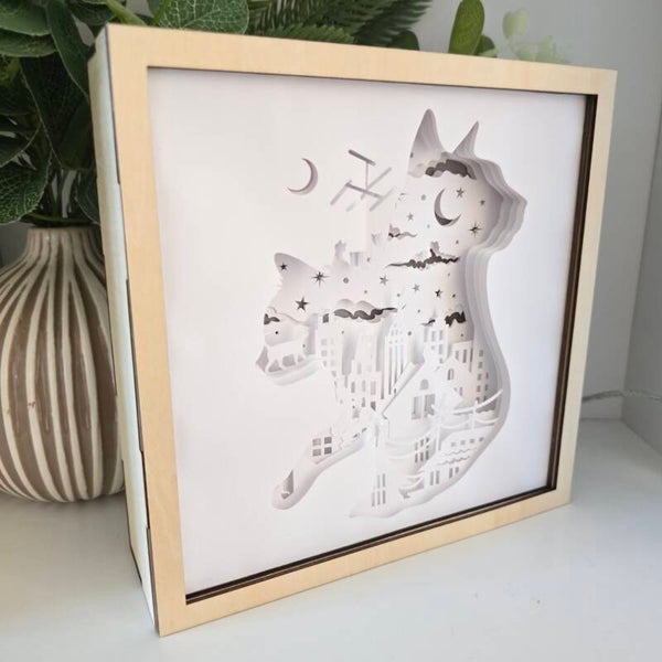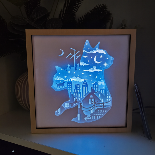 Parce qu'elle parle aux amoureux des chats, aux rêveurs de pleine lune, et à tous ceux qui aiment les décors doux et lumineux. Cette lightbox est un objet de décoration qui mêle poésie, artisanat et technologie pour illuminer ton quotidien avec tendresse et élégance.
