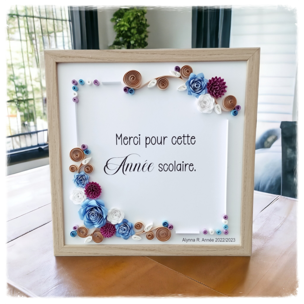 Cadre fleuri pour Maîtresse, Nounou, ATSEM ou AESH – Quilling 20x20
