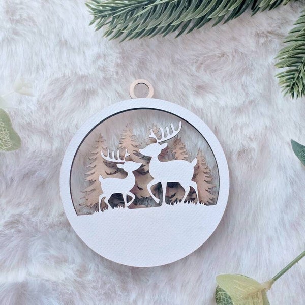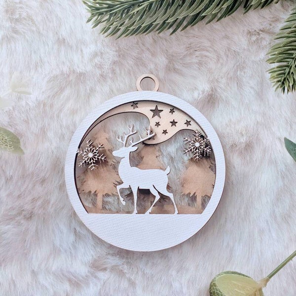 Ajoute une touche artisanale et chaleureuse à ta décoration de Noël avec ces boules en bois et papier, découpées avec finesse et remplies de poésie. Deux univers s’offrent à toi : Rennes ou Sapins, pour une ambiance douce et naturelle.