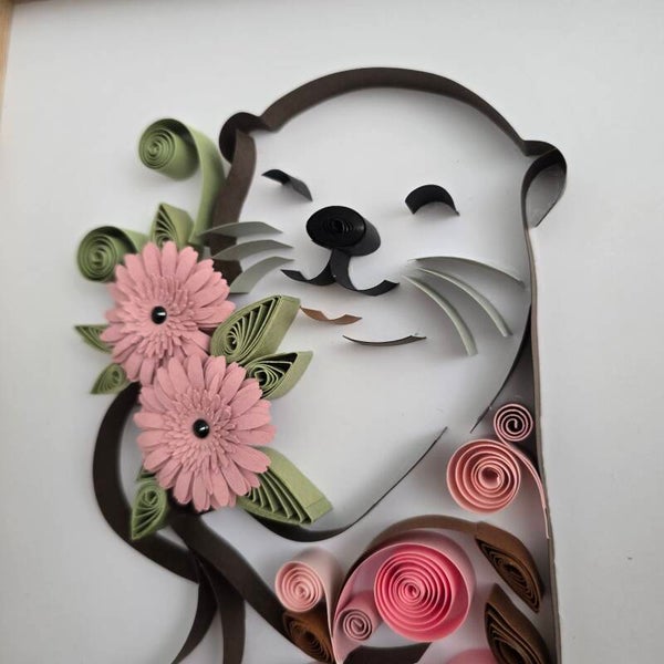 Ajoute une touche de tendresse à ton intérieur avec cette adorable loutre en papier quilling, qui mêle délicatement poésie florale et artisanat minutieux. Ce tableau est une véritable ode à la douceur et à la nature, parfait pour offrir ou s'offrir un moment de sourire.