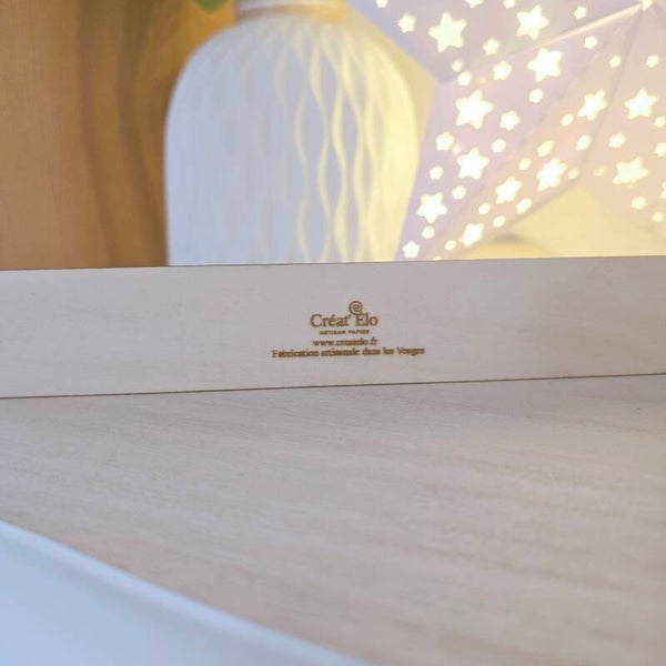 Matériaux : Bois naturel et papier type journal soigneusement collé