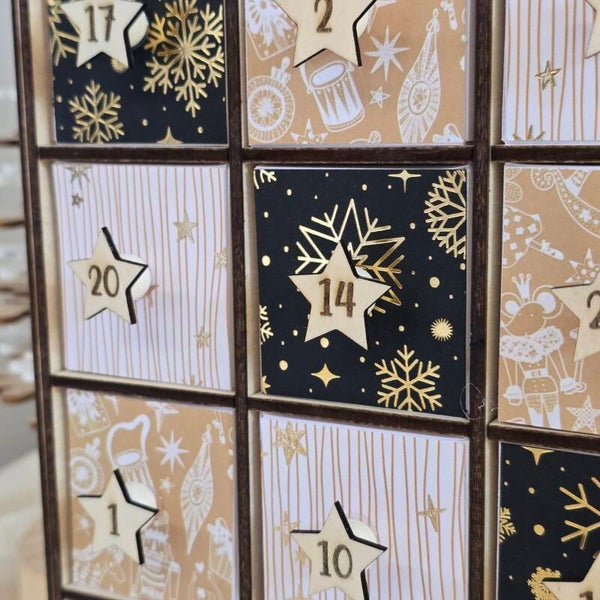 Il allie praticité et raffinement : chaque jour de décembre devient une nouvelle découverte. Son décor bois et ses détails soignés en font aussi un véritable objet de décoration, idéal pour créer une atmosphère chaleureuse et magique dans ton foyer.