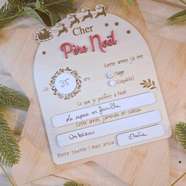 Ajoutez une touche de magie aux préparatifs de Noël avec ce tableau en bois "Cher Père Noël". Un support original et réutilisable chaque année pour écrire sa lettre au Père Noël d’une façon ludique et pleine de charme.