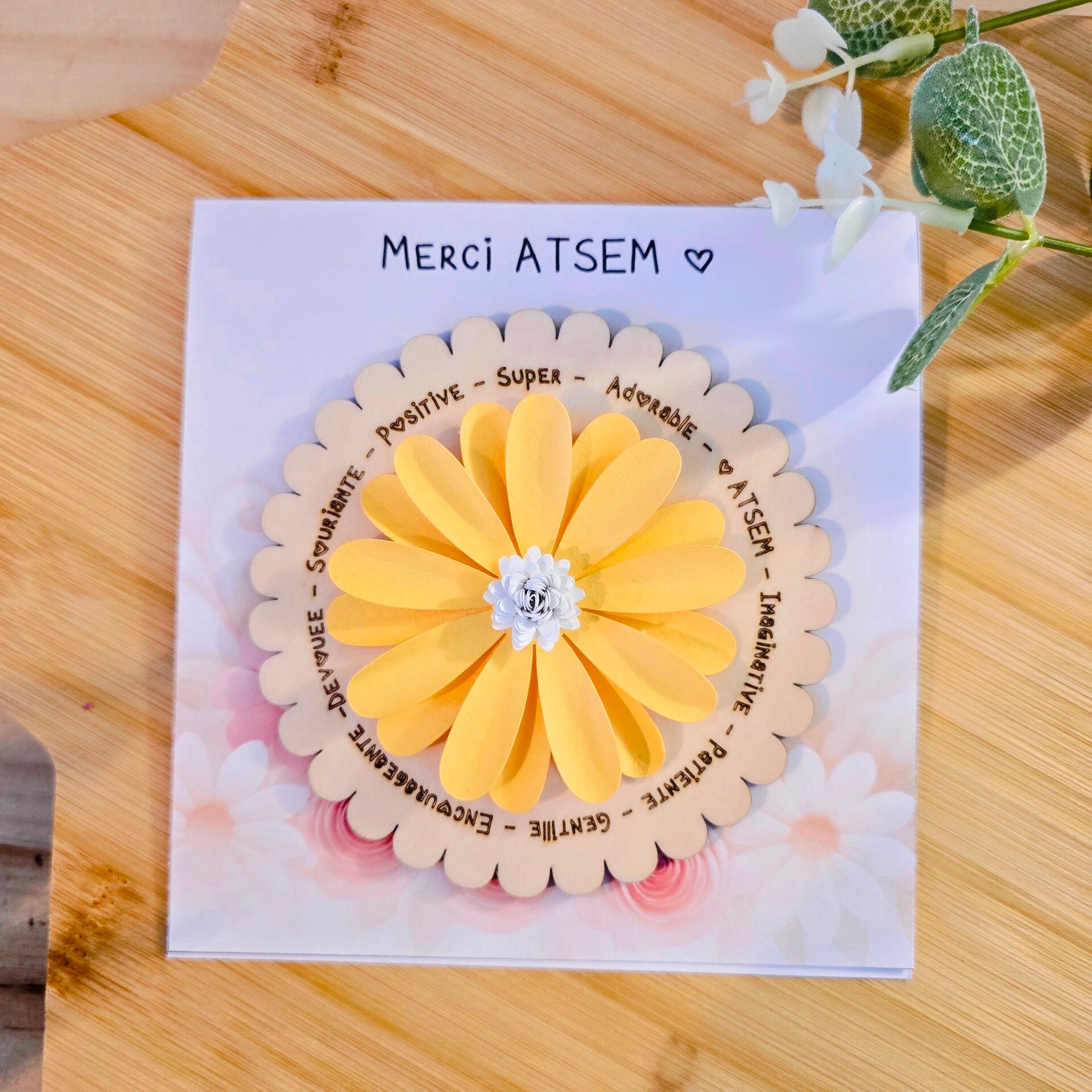 Ce magnet artisanal est un cadeau simple mais plein de sens pour remercier une maîtresse, une nounou, une ATSEM ou une AESH pour leur bienveillance et leur implication tout au long de l’année scolaire.