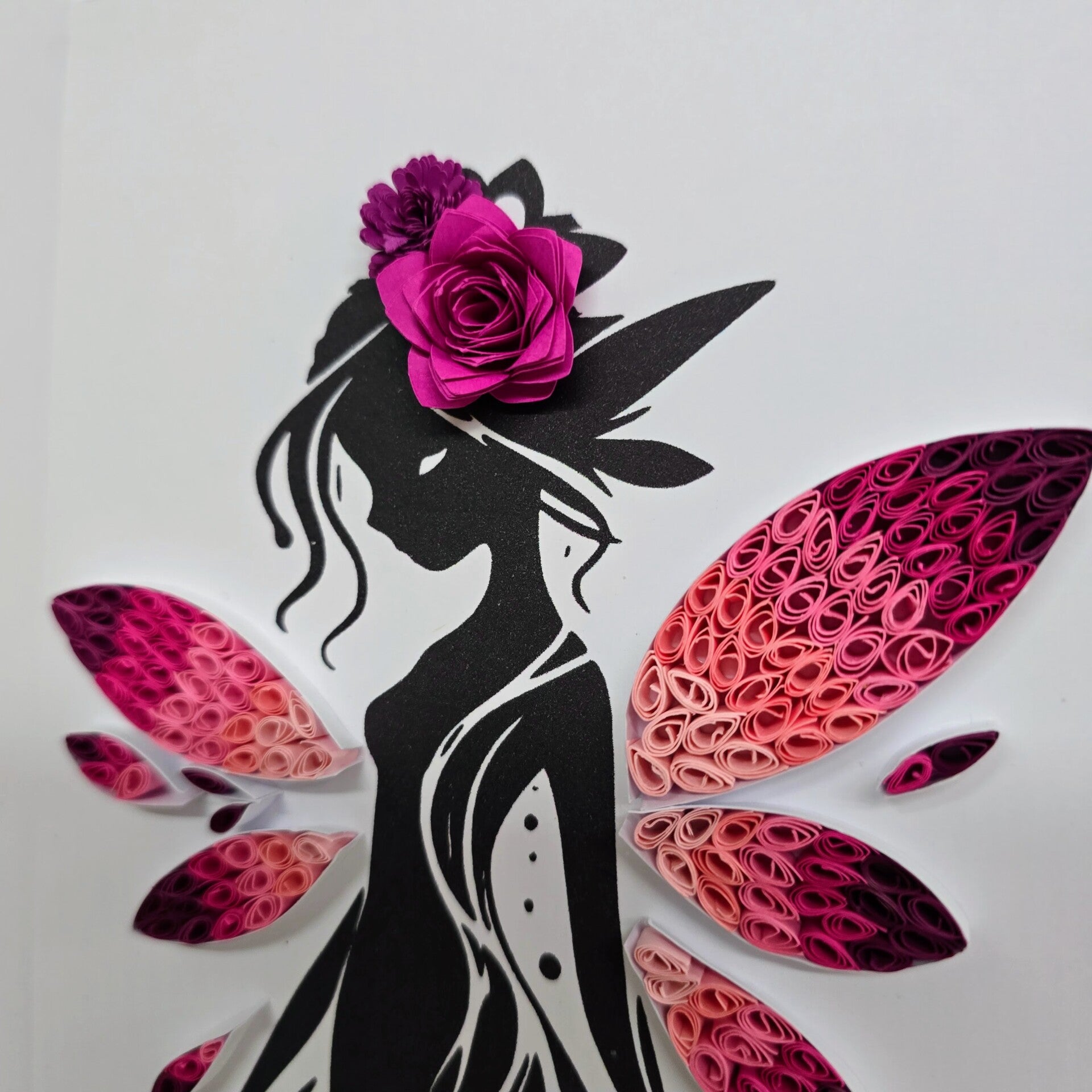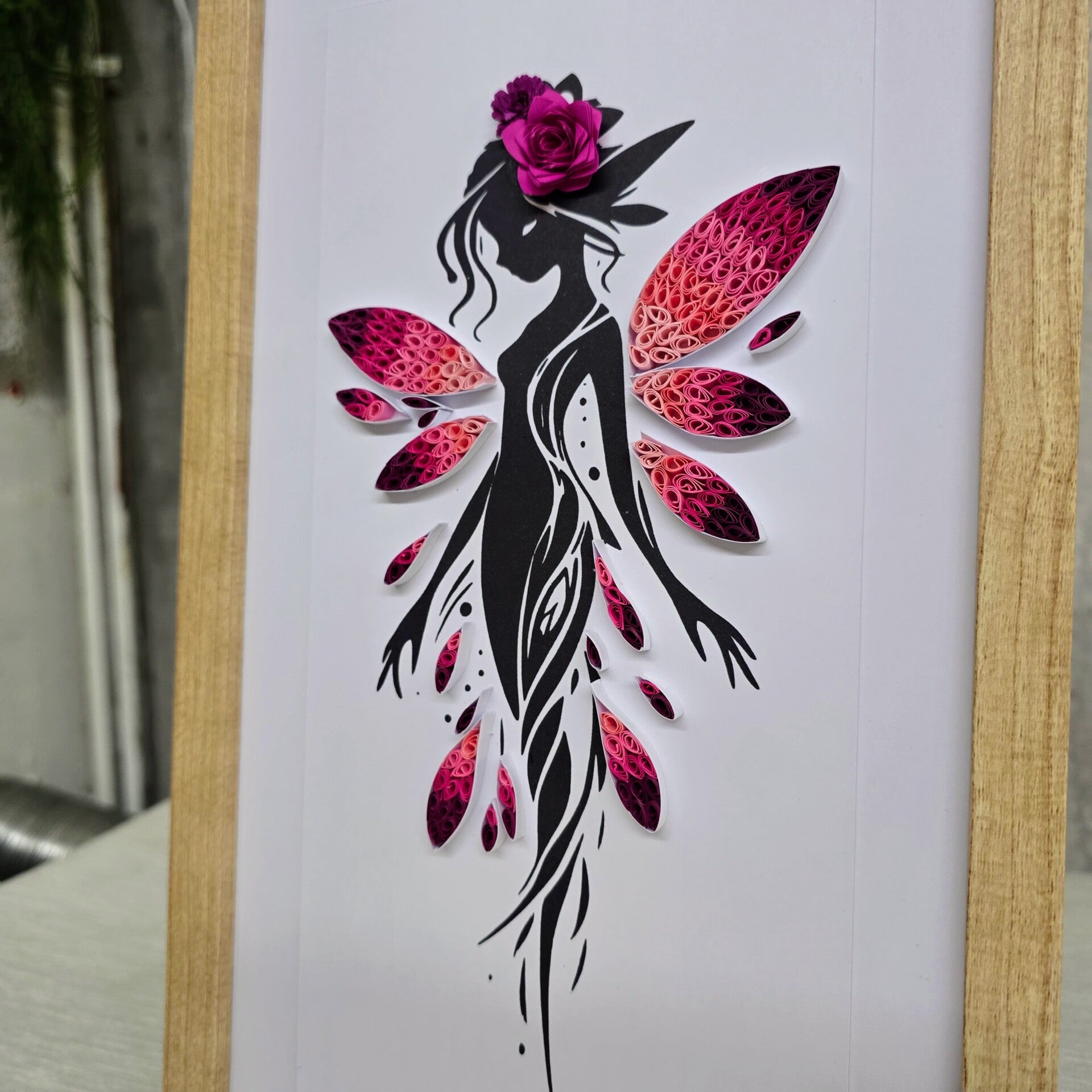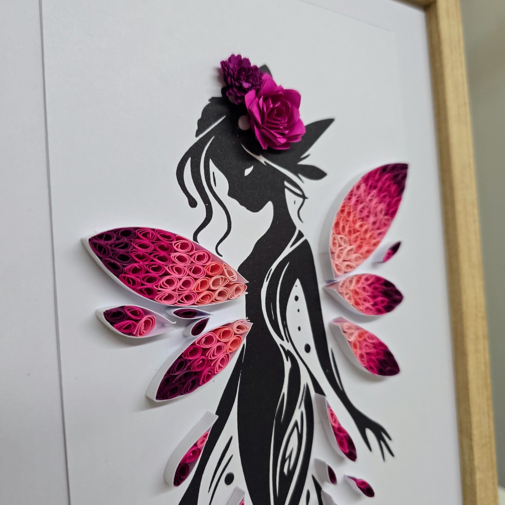 Ajoutez une touche de poésie et d’élégance à votre décoration avec ce cadre artistique représentant une silhouette féminine délicate aux ailes fleuries. Une création tout en finesse qui mêle légèreté, féminité et univers féérique.