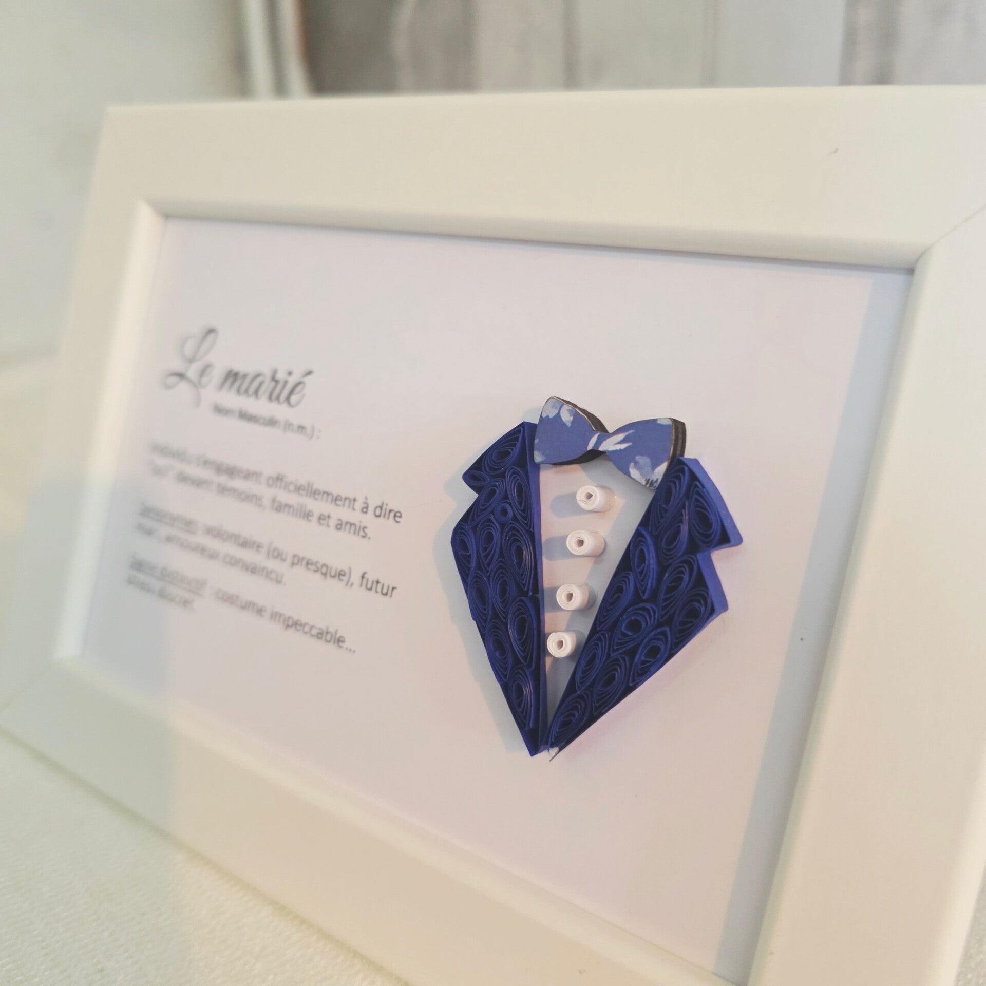 Ajoutez une touche d’élégance et d’humour à votre décoration de mariage avec ce cadre définition “Le marié”, une création artisanale pleine de caractère.